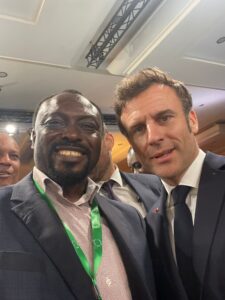 AJESH at the One Forest Summit, Libreville Gabon. The CEO discuss with the President of France Emmanuel Macron and the Prime Minister of Cameroon.